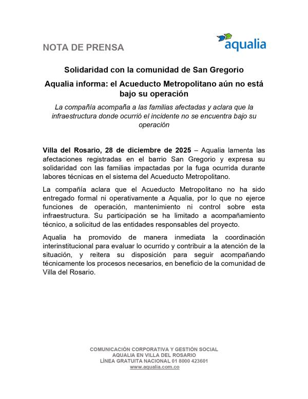 Aqualia informa: el Acueducto Metropolitano aún no está bajo su operación