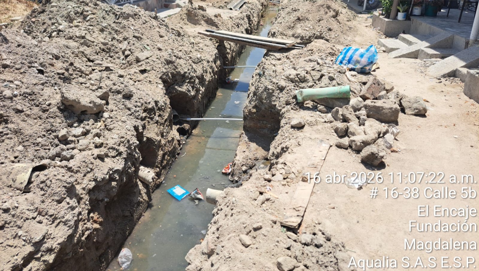 Fundación, 18 de abril de 2026. Aqualia en Magdalena informa a la comunidad que las recientes actividades de cambio de tubería de alcantarillado realizadas en la calle 3B entre carreras 16 y 17, barrio 16 de Julio, fueron realizadas por iniciativa de la comunidad y no hacen parte de obras ejecutadas por la empresa.