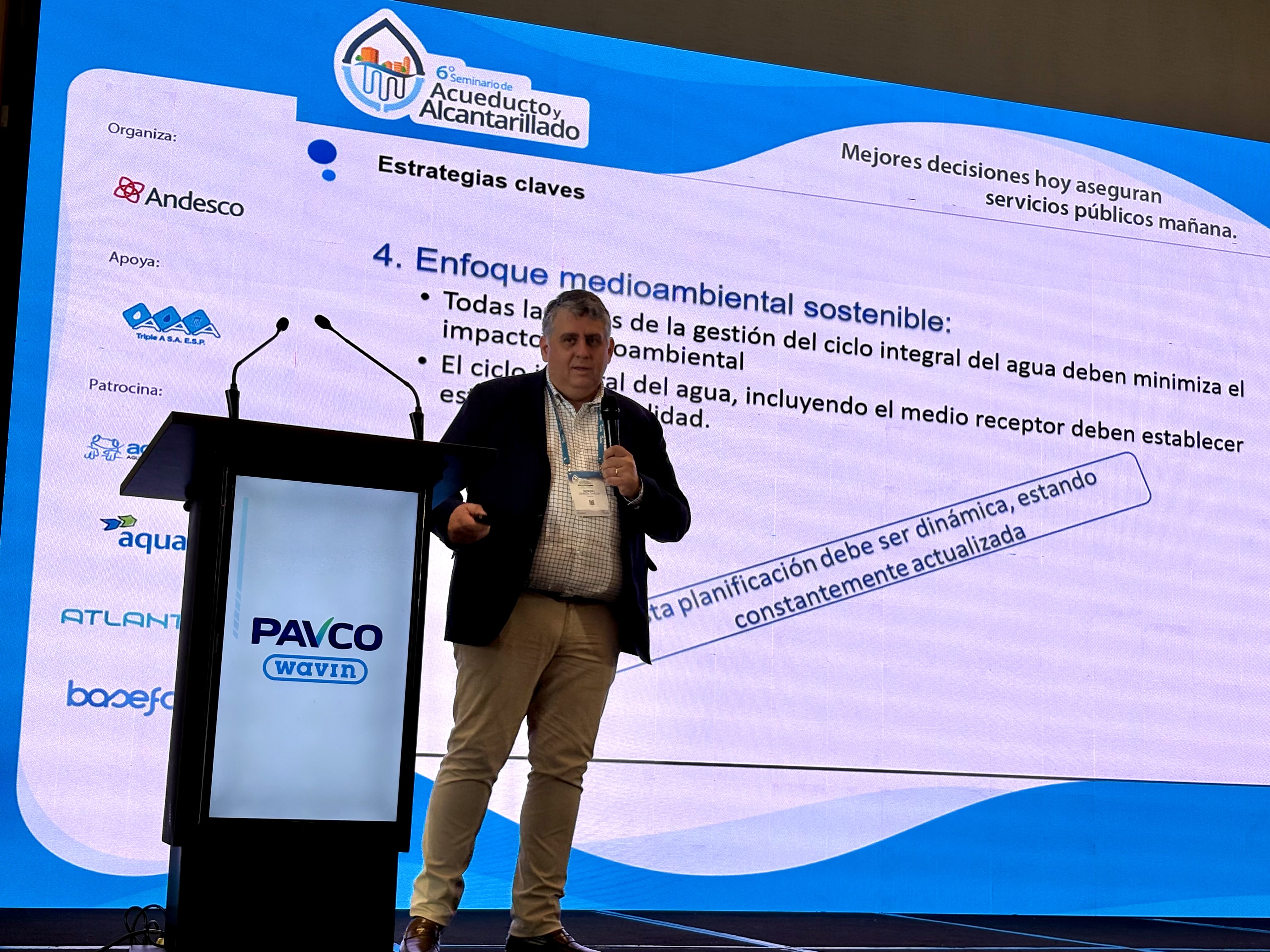 En el marco del seminario, Sergio García, Director de Operaciones de Aqualia Colombia, presentó la ponencia “Prepararse para lo inesperado en la gestión del agua en municipios pequeños y medianos"_, en la que abordó la importancia de anticiparse a los riesgos operativos, fortalecer la resiliencia de los sistemas y adoptar modelos de gestión que garanticen la continuidad del servicio en territorios con mayores vulnerabilidades.