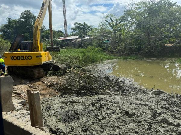 Maquinaria que realiza la recuperación del Caño Bugre rompe tubería de acueducto en Cereté