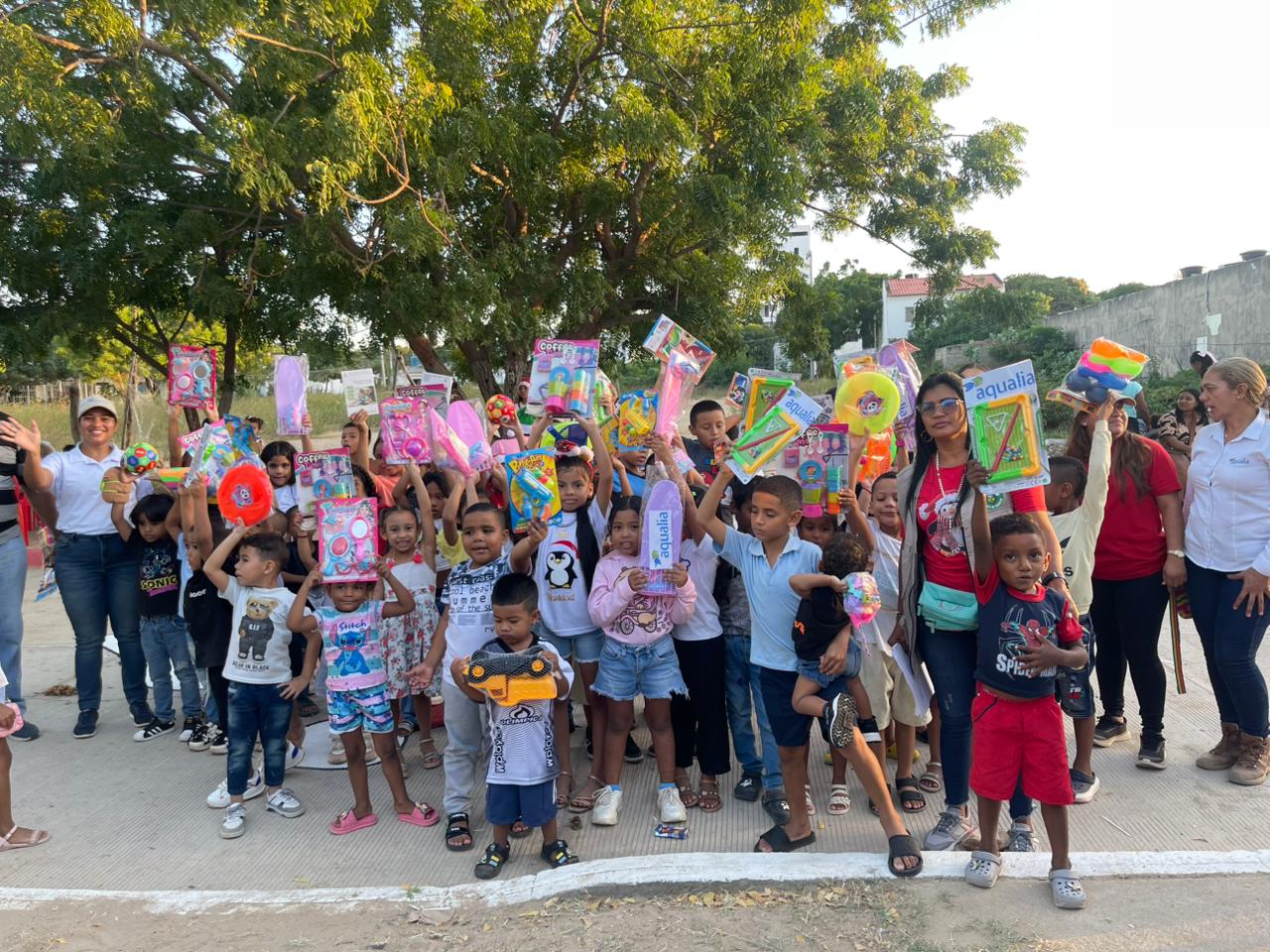 “Estamos muy agradecidos con Aqualia por este detalle con nuestros niños, para muchas familias estos regalos significan mucho y hoy se reflejan en la alegría de cada uno que lo recibe”, expresó Dairo Pana, presidente del barrio José Antonio Galán.
