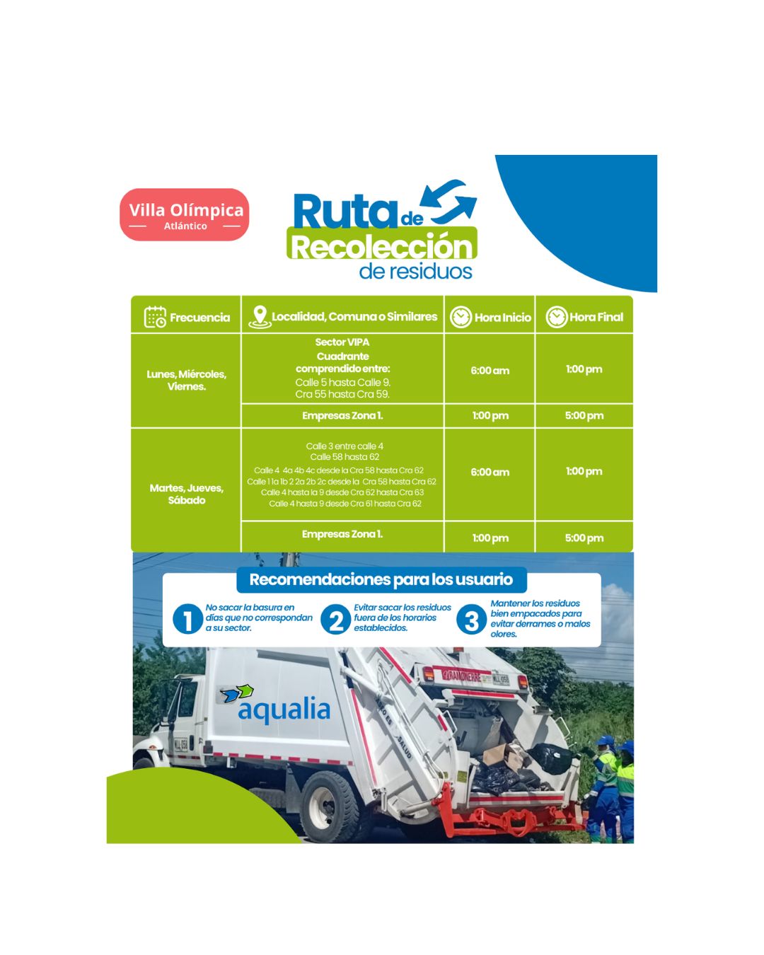 Conoce la ruta de recolección de residuos en Villa Olímpica, Galapa.